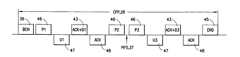 Because a single MAC layer must interface with disparate PHY layers, the 802.11 standard uses an additional protocol layer termed the Physical Layer Convergence Protocol (PLCP) disposed between them that is defined differently for each transmission method. The PLCP adds a preamble and a header (each of various sizes) to a PLCP Service Data Unit (PSDU), which is the portion of the complete transmission frame (PPDU or PLCP Protocol Data Unit at the PHY layer) that carries the actual data to be transmitted between stations or between the point controller PC and a station.FIG. 11 is a block diagram showing aPSDU65 for optimum topology according to the present invention, with times and numbers of bits tailored for compatibility with the 802.11 standard as it currently is written. The present invention enables the length of aguard interval66a,66bto be selectable (to vary) based on the CSI. For certain channels, the delay spread of the channel is shorter than other time and hence not necessary to keep a fixed cyclic prefix (CP) overhead. Further, if capacity achieving codings are used, such as low density parity check codes (LDPC) or Turbo codes, then additional time is allocated at the end of the packet for iterative decoding, which is not currently available in current IEEE 802.11 standard or its amendments. This additional time is represented in thePSDU65 ofFIG. 11 as an iterativedecoding signal extension67.