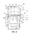 As shown inFIG. 3 and in one construction, eachcompressor14A,14B, and14C comprises anelectric motor32 driving ashaft34 connected to a pressurizingunit36. For purposes of the description herein,compressor14A will be referred to; theother compressors14B and14C preferably having the same construction. The pressurizing unit may take on any suitable form. In one construction, reciprocating pistons driven by a motor constitute the pressurizing device, but more and more, the quieter rotary devices found in scroll compressors and screw compressors are being employed to compress the vaporous refrigerant. A scroll compressor is illustrated inFIG. 3. Thecompressor14A has a lowside suction inlet38 that receives the vaporous refrigerant from theevaporators12A and12B and a highside discharge outlet40 through which hot, pressurized refrigerant is discharged from the compressor. In one construction, themotor32 and pressurizingunit36 are semi-hermetically or hermetically sealed within an outer casing orshell42. Themotors32 of the compressors are each connected to a respective high voltage (e.g., three phase 480 V AC or 208 V AC)power line44A,44B, and44C (FIG. 1) extending from apower distribution center46 within the food store. These lines are shielded, such as by placement within a conduit, as may be required by electrical codes.
