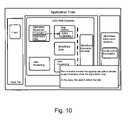 Referring toFIGS. 9–16, there is depicted an exemplary manner of operation (application flow) with respect to the exemplary embodiment of the enterprise/system10 depicted inFIGS. 7 and 8. InFIG. 9, thesystem10 controller looks into the application map to find an action to invoke for a given URL request from the client. In this case, the application map (application_map.xml) finds the search action handler to invoke. It should be appreciated that the exemplary manner of operation may be extrapolated to a content search and retrieval for a subject. InFIG. 10, the controller, having found the requisite action, invokes the appropriate action handler using information from the application map. In this case, the appropriate action handler is the search action handler.