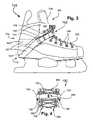 The time-tested technique of tightening the laces leaves a number of shortcomings. First, laces stretch or can become loosened, and the support gained from tightening the laces is lost. Second, tightening the laces can be an arduous process. Pulling on the laces loop-by-loop as is required to tightly secure the laces is hard on the fingers of the skater, if the skater can even fit his or her fingers into the loops as desired to effect a desired tightness. Tightening the laces by hand can be so hard on a skater's fingers that skate shops market lace tighteners having a hook supported by a handle that a skater can use to pull on the laces to tighten them. Third, even if a user can tighten the laces to a desired degree of tightness, the tightness of the laces tends to be uniform across the upper of the skate. A skater may desire to tighten the laces particularly at the base of the ankle to keep his or her heel secured in a heel portion of the skate to maintain control of the skate. Unfortunately, to achieve this tension, the laces may be undesirably tight across the skater's or at the top of the upper, uncomfortably cutting into the ankle of the skater.