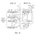 Information flow between a network such as LAN/WAN25 and theINIC22 may include control information and data, and so is shown with thickblack arrow85. Examples of information flow81 between network such as LAN/WAN25 and theINIC22 include control information, such as connection initialization dialogs and acknowledgements, as well as file reads or writes, which are sent as packets containing file data encapsulated in control information. Thesequencers52 process control information from file writes and pass data and control information to and from INIC frame buffers77, and so those transfers are represented with thickblack arrow88. Control information regarding the data stored inframe buffers77 is operated on by theprocessor44, as shown bythin arrow90, and control information such as network connection initialization packets and session layer headers are sent to theprotocol stack38, as shown bythin arrow92. When a connection has been set up by the host, control information regarding that connection, such as a CCB, may be passed betweenhost protocol stack38 andINIC memory46, as shown bythin arrow94. Temporary storage of data being read from or written toINIC storage unit70 is provided byINIC file cache80 andframe buffers77, as illustrated by thickwhite arrows96 and98. Control and knowledge of all file streams that are stored onINIC file cache80 is provided byfile system23, as shown bythin arrow91. In an embodiment for whichhost storage unit66 does not store network accessible data, file system information is passed betweenhost file cache24 andhost storage unit66, as shown byarrow81. Other embodiments, not shown in this figure, may not include a host storage unit, or alternatively may use a host storage unit and host file cache primarily for network file transfers.