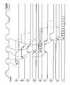 FIGS. 6A–B shows a further example190 of a scalar I-pipe118I corresponding to the cross section ofFIG. 3 in further detail and a corresponding timing diagram. Each I-pipe stage152 is bracketed on input and output by aregister stage192. In this example, each of the GCSR latches154 is a two stage latch and a single bit of, essentially, a serial-in/parallel-out register. The two stage latches154 include afirst stage latch194 and asecond stage latch196. Thefirst stage latch194 is identical to the latches in the register stages192. Thesecond stage latch196 is enabled using the negative clock polarity from that for thefirst stage latch194. Thus, for example with the first stage latches194 being clocked on a rising clock edge, the second stage latches196 are clocked on the falling clock edge to ensure that a valid input is provided to I-clock drivers156. As described with reference toFIGS. 3–5 and here inFIG. 6, I-clock drivers156 are AND gates and function as AND gates. However, each of ANDgates156 may include a clock driver that may be a dual phase clock driver, if desired. Input blocks198 provide the appropriate clock control logic for the particular type of selected suspend/slow control logic. Thus, in the example ofFIG. 3,input block198 would includeinvertor160, as well as afirst stage194 of thelatch154 for this first stage ofGCSR150. Likewise, for the examples ofFIGS. 4 and 5,input block130 would includelatch174 and ANDgate176.