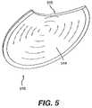 As shown inFIG. 4,flexible member500 has a concave under surface502 (when viewed from its bottom) and an opposing convex upper surface, and is circular in shape. As a result, the interior portion of theflexible member500 is elevated relative to its peripheral portion and is positioned above a portion of the rear sole of the user when supported in the shoe.