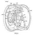 In connection with the hypocyclic gear train shown inFIG. 3, the wobble gears310 and312 are disposed side-by-side. This construction has a tendency to improve rigidity. For lower gear train ratios, the diameter ofgear310 may differ by as much as 30% or more from the diameter ofgear312. In such a case, gears310 and312 may be disposed with one inside the other, so that all gear meshes occur in a single plane.