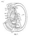 FIG.6Certain applications may require a rugged rotary actuator with a stiff output gear train of high reduction ratio in a compact configuration. Depending on the specifics, such an actuator may be driven either by a pancake switched reluctance motor (SRM) prime mover or a cylindrical brushless D.C. Motor (DCM).FIGS. 6 and 7 are cutaway isometric views of these alternate embodiments.