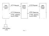 PREFERRED EMBODIMENT OF THE INVENTIONFIG. 1 shows a user system with a user interface (102) comprising a Web Browser (101) for accessing the World-Wide-Web (WWW). The WWW content is transferred using the HTTP protocol. HTTP requests and responses are exchanged between the Web Browser program (101) and a destination Web Server (103) containing the WWW information the user wants to access. The Socks Server (104) between the Web Browser (101) and the Web Server (103) acts as an intermediary HTTP Relay forwarding the HTTP requests and responses to their destination. The Web Browser program (101) makes an HTTP request to the Socks Server (104) and the Socks Server forwards the request to the destination Web Server (103). The flow in the reverse direction (HTTP response) again goes via the Socks Server (104) to the Web Browser (101). In this way the Socks Server can limit the traffic to authorised transactions according to its configuration (based on some defined security and access control policy). The Socks Server hence protects the network where Web Browser is located.