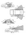 FIG. 13 is a side elevation of a vehicle illustrating the light pattern generated by a signal light useful with the invention;