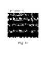 FIG. 11 is an enlarged scanning electron microscope photomicrograph perspective illustration of the second surface of the elastomeric web shown inFIG. 9 tensioned to approximately 100% strain;