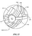FIG. 14 is a schematic diagram of the stops of the pinion gear for an inner gimbal of the borehole navigation system ofFIG. 12;