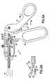 Referring now toFIG. 11, there is shown a schematic section view of still another exemplary embodiment of a one hand locking and releasingapparatus330. Referring also toFIGS. 12A,12B and12C there is shown a schematic section view of a locking andrelease mechanism332 of the locking and releasingapparatus330 fromFIG. 11. One hand locking and releasingapparatus330 similarly includes ahandle334, afinger loop336 integral with the handle and first and second lever members,338,340 pivotally mounted movement between a first or locking direction342 a second or releasingdirection346. The lever members are moveable in opposite first and second directions relative to the handle over a predetermined range of motion. Aforce transmitting member350 extends away from a locking andrelease mechanism332.Force transmitting member350 through locking andrelease mechanism334 operably connects thelever member370 to the medical device. As seen inFIGS. 12A–12C, locking andrelease mechanism334 operably connectslever member338 to force transmittingmember350 for operating the medical device. Locking andrelease mechanism334 locks movement of the force transmitting member in onedirection366 after movement of thelever member370 in lockingdirection342. Locking and release mechanism354 releases movement of theforce transmitting member350 in the onedirection366 after opposite movement of thelever member338 in a releasingdirection346.Lever member338 operates the locking andrelease mechanism334 releasing the movement of theforce transmitting member350 in the onedirection366 substantially upon changing movement of thelever member338 from the locking342 to the releasingdirection346.Locking mechanism334 locks movement of theforce transmitting member350 at a locking position368 (seeFIG. 12B), located over at least part of the range ofmotion370,372 oflever member338 after movement of the lever member infirst direction342. Changing the direction of movement of thelever member338 fromfirst direction342 where the lever member is at a locking position causes therelease mechanism332 to release movement of force transmitting member350 (seeFIG. 12C). Releasingdirection346 is substantially opposite of lockingdirection342. Locking andrelease mechanism332 has apawl374 and arack376 coupled to eitherforce transmitting member350 or handle334 respectively.Pawl374 engages therack376 after movement oflever member338.Pawl374 disengages therack376 after opposite movement oflever member338.Pawl374 hasflexure section378.Flexure section378 is engaged bypin380 through relative movement betweenlever member338 andpawl374.Flexure section378 operates as aspring biasing pawl374 to engagerack376.Force transmitting member350 is coupled to slidingblock372. Slidingblock372 is constrained to slide relative to frame334.Rack376, in the embodiment shown is grounded toframe334.Pawl374 is flexurally coupled to sliding block382.Link384 is pivotally coupled tolever338.Link384 haspin380 which slides inslot386 of sliding block382.Pin380 in combination withslot386 enablesflexure section378 to be engaged bypin380 through relative movement betweenlever member338 andpawl374 throughlink384 resulting inpawl374engaging rack376 after movement oflever member338.