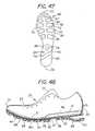 FIG. 20 is a longitudinal cross-sectional medial side view of an alternate article of footwear generally similar to that shown inFIG. 19, further including a spring guard including a plurality of vibration decay time modifiers.