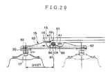 Brackets15bprotruding upward are attached at top portions of substantially a center of both side surfaces of thecarrier15, and agrooves15aeach in a concave shape extending in substantially a vertical direction are formed on outer side surfaces of thebrackets15b. Aroller72arotatably provided at one end of alever72 is rollably inserted in thegroove15ain a concave shape with both side surfaces of thegroove15aas rolling contact surfaces, and the other end portion of thelever72 is rotatably connected to the sub-carrier50 with a pin.
