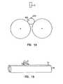 FIG. 15 is an illustration of a pair of rollers and a portion of a spray nozzle that is angled relative to the axis of the rollers.