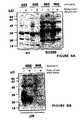 FIGS. 8A–B present a comparison of the pattern of immunoprecipitated, labeled VEGF-Cforms using antisera 882 andantisera 905. Adjacent lanes contain immunoprecipitates that were (lanes marked +) or were not (lanes marked −) subjected to reduction and alkylation.