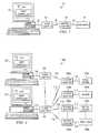 FIG. 3 illustrates a system that allows multiple computers to communicate with multiple peripherals using wireless connections;
