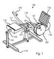Theframe110 includes a longitudinal member and front and rear transverse members that cooperate to form a stable base for resting on a floor surface. Afoot platform116 is mounted on the front end of theframe110 to provide a foot receiving surface that is best seen inFIGS. 1 and 3. Thefoot platform116 may be made selectively adjustable (by sliding and/or pivoting) relative to theframe110 if desired.