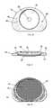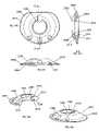 FIGS. 1d–fshow top (FIG. 1d), side cutaway (FIG. 1e) and bottom (FIG. 1f) views of a second baseplate of the first embodiment family, the second baseplate having a circular recess within which seats a flexible convex structure.
