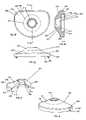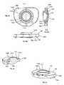 FIGS. 10a–eshow top (FIG. 10a), side (FIG. 10b), side cutaway (FIG. 10c), perspective cutaway (FIG. 10d) and perspective (FIG. 10e) views of a third type of second baseplate of the fourth embodiment family, the third type of the second baseplate having the central curvate pocket and also having a recess on a circumferential wall around the curvate pocket.
