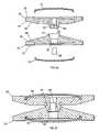 Accordingly, theball1600 is captured in the socket1707 (so that the device will not separate in tension), can freely rotate in thesocket1707 about the longitudinal axis of thepost1412, and can freely angulate in thesocket1707 about a centroid of motion located at the center of the sphere defined by theball1600. Further, the opening of thebore1702 of theconvex structure1700 on the inwardly facingsurface1706 of theconvex structure1700 is large enough to permit thepost1412 to angulate (about the centroid of motion at the center of the sphere defined by the ball1600) with respect to thebore1702 as theball1600 angulates in thesocket1707. Preferably, the conformation of thebore1702 accommodates angulation of thepost1412 at least until theperimeter regions1410,1714 of the inwardly facingsurfaces1408,15080/1706 meet. Further preferably, theperimeter regions1410,1714 have corresponding contours, so that the meeting of the perimeter regions reduces any surface wearing. Further accordingly, in this alternate first preferred embodiment, part or all of a compressive load applied to the baseplates will be borne by thespring member15100, which will dampen the load and/or absorb the load and preferably help return the baseplates to their original uncompressed relative positions.