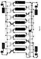 In 1972, de Rosset and Neuzil, both of UOP, obtained U.S. Pat. No. 3,706,812 which became the basis of current practicing lab and pilot scale SMB systems. The downcomer sections disclosed in Broughton's earlier patent were replaced with columns linked together through tees connected to rotary valves, as shown inFIG. 1. The disclosed system incorporated a check valve between each column and its tee to maintain correct directional flow. The '812 patent also disclosed the use of solenoid valves to move the ports through the columns.