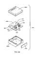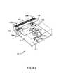 As shown inFIG. 55B, the PLIIM-based image capture andprocessing engine4092 comprises: an optical-bench/multi-layer PC board4104, contained between the upper and lower portions of theengine housing4105A and4105B; an IFD (i.e. camera)subsystem4106 mounted on the optical bench, and including area CCDimage detection array4096 contained within a light-box4107 provided withimage formation optics4108, through which light collected from the illuminated object along 3-D field of view (FOV)4095 is permitted to pass; a pair of PLIMs (i.e. single VLD PLIAs)4109A and4109B mounted onoptical bench4104 on opposite sides of the IFD module, for producing a PLIB within the 3-D FOV; a pair ofbeam sweeping mechanisms4110A and4110B for sweeping the planar laser illumination beam (PLIB)4093 produced from the PLIA across the 3-D FOV; and an optical assembly configured with each PLIM, including an acousto-electricBragg cell structure4111 and acylindrical lens array4112, arranged above the PLIM in the named order, which provides a despeckling mechanism that operates in accordance with the first generalized method of speckle-pattern noise reduction illustrated in FIGS.1I6A and1I6B.