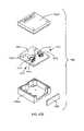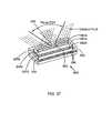 As shown inFIG. 56B, the PLIIM-based image capture andprocessing engine4122 comprises: an optical-bench/multi-layer PC board4134, contained between the upper and lower portions of theengine housing4135A and4135B; an IFD (i.e. camera)subsystem4136 mounted on the optical bench, and including an area CCDimage detection array4126 contained within a light-box4137 provided withimage formation optics4138, through which light collected from the illuminated object along the 3-D field of view (FOV)4125 is permitted to pass; a pair of PLIMs (i.e. comprising a dual VLD PLIA)4139A and4139B mounted onoptical bench4134 on opposite sides of the IFD module, for producingPLIB4123 within the 3-D FOV4125; a pair ofbeam sweeping mechanisms4140A and4140 for sweeping the planar laser illumination beam (PLIB)4123 produced from the PLIA across the 3-D FOV; and an optical assembly configured with each PLIM, including a high spatial-resolution piezoelectric driven deformable mirror (DM)structure4141 and acylindrical lens array4142 mounted upon each PLIM in the named order, providing a despeckling mechanism that operates in accordance with the first generalized method of speckle-pattern noise reduction illustrated in FIGS.1I7A through1I7C.