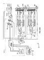 In the illustrative embodiment of FIG.40A3, the PLIIM-based system has an object detection mode, a bar code detection mode, and a bar code reading mode of operation, as taught in copending U.S. application Ser. No. 08/890,320, filed Jul. 9, 1997, and Ser. No. 09/513,601, filed Feb. 25, 2000, supra. During the object detection mode of operation of the system, thecamera control computer2009 transmits a control signal to theVLD drive circuitry11, (optionally via the PLIA microcontroller), causing each PLIM to generate a pulsed-type planar laser illumination beam (PLIB) consisting of planar laser light pulses having a very low duty cycle (e.g. as low as 0.1%) and high repetition frequency (e.g. greater than 1 kHZ), so as to function as a non-visible PLIB-based object sensing beam (and/or bar code detection beam, as the case may be). Then, when the camera control computer receives an activation signal from the laser-based object detection subsystem2014 (i.e. indicative that an object has been detected by the non-visible PLIB-based object sensing beam), the system automatically advances to either: (i) its bar code detection state, where it increases the power level of the PLIB, collects image data and performs bar code detection operations, and therefrom, to its bar code symbol reading state, in which the output power of the PLIB is further increased, image data is collected and decode processed; or (ii) directly to its bar code symbol reading state, in which the output power of the PLIB is increased, image data is collected and decode processed. A primary advantage of using a pulsed high-frequency/low-duty-cycle PLIB as an object sensing beam is that it consumes minimal power yet enables image capture for automatic object and/or bar code detection purposes, without distracting the user by visibly blinking or flashing light beams which tend to detract from the user's experience. In yet alternative embodiments, however, it may be desirable to drive the VLD in each PLIM so that a visibly blinking PLIB-based object sensing beam (and/or bar code detection beam) is generated during the object detection (and bar code detection) mode of system operation. The visibly blinking PLIB based object sensing beam will typically consist of planar laser light pulses having a moderate duty cycle (e.g. 25%) and low repetition frequency (e.g. less than 30 HZ). In this alternative embodiment of the resent invention, the low frequency blinking nature of the PLIB-based object sensing beam (and/or bar code detection beam) would be rendered visually conspicuous, thereby facilitating alignment of the PLIB/FOV with the bar code symbol, or graphics being imaged in relatively bright imaging environments.