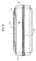 As shown inFIG. 5, arib30, which is laterally long and rectangular as seen from the front, is provided on the frontside face section21 of thetape printing apparatus3 such that it is erected surrounding the frontside face section21 between therespective ribs28 and29. Therib30 is formed in a height of their top ends lower than that of theribs28,29.Ribs32,33, which are substantially triangular in terms of the side view, are provided in sections above therespective ribs28,29 on both right and left sides of therib30 such that they are protruded in substantially the same height as the protruding heights of theribs28,29.
