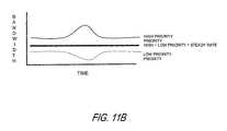 FIG. 11A is a graph comparing the relatively flat bandwidth requirements for the low-priority pre-fetching transfer versus the bandwidth necessary to service the high-priority on-demand requests.