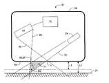 Thedevice51 includes a coherentlight source29 anddetector41, generally as set forth above. The coherentlight source29 projects acoherent light beam33 and the detector has a field ofview45, substantially as set forth above. Thedevice21 further includes ahousing55 for receiving the coherentlight source29 and thedetector41. Thehousing55 includes asupport surface59 engageable with the trackingsurface25 for positioning and orienting the housing when tracking. Thesupport surface59. includes a substantially planar face engageable with the trackingsurface25.