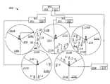 Cell214A, through which seven UTs,UTs8–14 are served, illustrates an overloaded cell (e.g., cell capacity is five UTs).Cell214A may be overloaded due to the limit on the number of codes that can be assigned within the cell, or may be overloaded due to total cell throughput. In the latter instance, fewer high-data-rate UTs may effectively replace multiple typical data rate (e.g., voice) UTs in regard to overloading the cell. Nearby cells,212C and216B serveUTs15–17 and5–7, respectively and are not loaded to capacity.