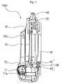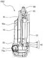 Therelease button60 is pushed by acoil spring62 so that theprojections50cof theclamps50 are pushed toward theaccommodation recess14 formed in thefront housing10.
