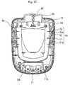 At this time, theprojections50cof theclamps50 are engaged with the recesses formed on both sides of themobile phone12, so that themobile phone12 is prevented from the portable charger for amobile phone1000. In other words, when theprojections50cof theclamps50 mounted on both sidewalls of theaccommodation recess14 formed in thefront housing10 are engaged with the recesses formed on both sides of themobile phone12, the lower actuating levers52 constituting the lower portions of theclamps50 are rotated counterclockwise around thehinge shafts50aagainst the coil springs51 and the upper actuating levers53 of theclamps50 are also rotated around thehinge shafts50a, so that themobile phone12 can be easily fitted into theaccommodation recess14.