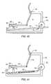 FIGS. 3A–3D depict embodiments of spring and/or damper devices that may provide a variable range of motion in a closed path. In certain embodiments, a spring/damper device may include a spring only, a damper only, a spring and damper combination in parallel, or a spring and damper combination in series. In an embodiment of a spring/damper device using only a damper, there typically will be resistive force without any restoring force. When a foot member is displaced from its neutral position, a spring/damper device resists movement of the foot member and may assist in returning the foot member to its neutral or start position.FIG. 3A depicts an embodiment offoot member100 supported onrollers104.Foot member100 may translate back and forth supported byrollers104. Spring/damper device106 may resist motion offoot member100 and provide a restoring force for the foot member. In some embodiments,foot member100 may translate through a sliding motion without the use of rollers. In some embodiments, translation features forfoot member100 may be included in a telescoping system that allows relative translation between the telescoping components. Spring/damper device106 may be located within the telescoping components.FIG. 3B depicts an embodiment with two spring/damper devices106 in combination.FIG. 3C depicts an embodiment withfoot member100 able to translate between two spring/damper devices106 and engage the spring/damper devices only toward the end of the foot member's travel.FIG. 3C also shows that spring/damper devices106 may be used in combination withcam device102.FIG. 3D depicts an embodiment with spring/damper devices106 moving withfoot member100 and engaging stops to generate a resistive/restoring force.
