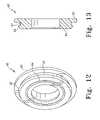 FIGS. 7 and 8 illustrate the features ofrotatable member16 in greater detail.FIG. 7 illustrates the features of the rotatable member when viewed from a distal perspective, andFIG. 8 illustrates the features of the rotatable member when viewed from a proximal perspective. As illustrated inFIG. 7,rotatable member16 comprisessnap ring36 andpositive stop member38. A plurality of ratchetingrib members40 are spaced along the inner circumference ofrotatable member16. Rotatablemember snap ring36 is utilized for engagingexternal snap ring46 ofbase member14.Positive stop member38 and ratchetingrib members40 are used as described below. As illustrated inFIG. 8,rotatable member16 also includessnap ring42 at its proximal end for engagement with a reciprocal snap ring onend cap60.