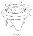 Again referring toFIG. 7, at least oneeyelet58 is formed on each of supportingbrackets54 for receiving at least onesuture100. By threadingsutures100 througheyelets58, guidingring56 may be guided into contact withsecond end14 offirst cylinder10. Tension applied tosutures100 and pressure applied against guidingring56 to sealfirst cylinder10 and its attachedannular cuff42 against the annulus.