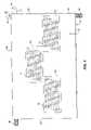 FIG. 6 is a block schematic view of a web made of, or carrying, products, articles or other objects to be UV cured trained over rollers to move in a generally vertical path past the panel of arrays of UV LED assemblies shown inFIG. 4 such that each product, article or other object with UV photo initiators therein can be cured as each product, article or other object moves past the arrays of UV LED assemblies while a non-oxygen gas is injected from a gas tube located near the bottom of the path of movement of the web.