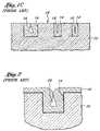 Following thetrench refill16, the top surface of thesubstrate10 is planarized by an etchback process, typically also performed using a chemical/mechanical polish. Prior to etchback, thesubstrate10 may be coated with a layer of photoresist (not shown) in order to provide a planar surface with which to begin the etchback. The etchback itself provides aplanarized substrate surface18, havingdielectric material16 filling thetrenches14 up to and level with thetop surface18.