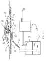FIG. 12 shows a plan view of the apparatus for drainage ofFIG. 11 shown from the side applied to a surface wound held by the adhesive dressing and including an active collector system in fluid communication with the external ends of the gathered together bundle.