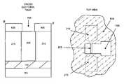Dummy oxide405 may be formed onfin205,source210 and drain215 using a conventional process, as shown inFIG. 4A.Dummy oxide405, for example, may be thermally grown onfin205,source210 and drain215.Dummy oxide405 may include an oxide, such as, for example, silicon oxide and may range, for example, from about 50 Å to about 150 Å in thickness. As further shown inFIG. 4B, a layer ofpolysilicon410 may be formed overfin205,source210 and drain215. The thickness ofpolysilicon layer410 may range, for example, from about 700 Å to about 2000 Å.Polysilicon layer410 may be polished back using, for example, a chemical-mechanical polishing (CMP) process, to achieve a planar surface to improve subsequent gate lithography. As shown inFIGS. 5A and 5B, adummy gate505 may be defined inpolysilicon layer410 using a conventional process, such as, for example, a conventional patterning and etching process.