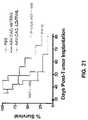 FIG. 21 shows that AAV-TRAIL increases survival of (U87MG glioma) tumor-bearing mice Immunodeficient mice bearing pre-established U87MG s.c. tumors were injected intra-tumorally (IT) with 2e5 or 5e10 vp of recombinant AAV-2 vectors encoding membrane-bound human TRAIL (mbTRAIL) or soluble TRAIL (LZsTRAIL). Mice were sacrificed when tumors became necrotic or reached a maximal volume of 1500 mm3. Kaplan Meier survival curves is shown.