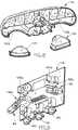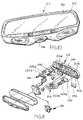 Other suitable LEDs may include high-intensity, high current capability light emitting diodes such as the high-flux power LEDs available from LumiLeds Lighting, U.S., LLC of San Jose, Calif. under the SunPower Series High-Flux LED tradename. Such high-intensity power LEDs comprise a power package allowing high current operation of at least about 100 milliamps forward current, more preferably at least about 250 milliamps forward current, and most preferably at least about 350 milliamps forward current through a single LED. Such high current/high-intensity power LEDs (as high as 500 mA or more current possible, and especially with use of heat sinks) are capable of delivering a luminous efficiency of at least about 1 lumen per watt, more preferably at least about 3 lumens per watt, and most preferably at least about 5 lumens per watt. Such high intensity power LEDs are available in blue, green, blue-green, red, amber, yellow and white light emitting forms, as well as other colors. Such high-intensity LEDs can provide a wide-angle radiation pattern, such as an about 30 degree to an about 160 degree cone. Such high-intensity power LEDs, when normally operating, emit a luminous flux of at least about 1 lumen, more preferably at least about 5 lumens and most preferably at least about 10 lumens. For certain applications such as ground illumination from lighted exterior mirror assemblies and interior mirror map lights, such high-intensity power LEDs preferably conduct at least about 250 milliamps forward current when operated at a voltage in the about 2 volts to about 5 volts range, and emit a luminous flux of at least about 10 lumens, more preferably at least about 15 lumens and most preferably at least about 25 lumens, preferably emitting white light. Typically, such high-intensity power LEDs are fabricated using Indium Gallium Nitride technology. However, to maintain the low temperatures associated with lower-intensity LEDs, for example below about 130 degrees Celsius, more preferably below about 100° Celsius, and most preferably below about 70 degrees Celsius, a heat sink can be incorporated into incandescentlight source unit16. Preferably such a heat sink comprises a metal heat dissipater (such as an aluminum metal heat sink) with a surface area dissipating heat of at least about 1 square inch, more preferably of at least about 2.5 square inches, and most preferably of at least about 3.5 square inches. Further details of suitable heat sinks are described below in reference to the embodiments depicted inFIGS. 25–27 and30–33. When used as, for example, a map/reading light assembly for an interior mirror assembly (such as in the mirror housing or in a pod attaching to the mirror mount to the vehicle), a single high-intensity power LED (for example, a single white light emitting power LED passing about 350 mA and emitting white light with a luminous efficiency of at least about 3 lumens per watt, and with a light pattern of about 120 degrees or so) can be used. As noted above, though not required, such a light source may be combined with a reflector element and a lens to form a high-intensity power LED interior light module capable of directing an intense white light beam of light from the interior mirror assembly to the lap area of a driver or a front-seat passenger in order to allow a reading function, such as a map reading function and/or to provide courtesy or theatre lighting within the vehicle cabin.