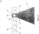 Also, high brightness LEDS are available from Uniroyal Technology Corporation of Saratoga, Fla. under the tradename POWER-Ga(I)™ High Brightness InGaN LEDs which comprise high brightness, high luminous efficiency short wavelength LEDs utilizing a power ring n-Contact and a centralized p-Pad design feature. 450 nm and 470 nm high brightness blue LED die products are available that have a minimum power output of 2 milliwatts in die form which, when conventionally packaged, can result in packaged lamp power levels between 4 and 5 milliwatts. Such LEDs combine indium gallium nitride (InGaN) materials on sapphire substrates in order to produce higher efficiencies. GaN LEDs can be produced by MOCVD epitaxy on Sapphire (aluminum oxide) or can be produced on silicon carbide substrates. Ultraviolet light emitting LEDs can be produced, and such can find application in the lighting of the present invention.