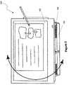 FIGS. 4A and 4B show anillustrative tablet PC106 that can be used in accordance with various aspects of the present invention. Any or all of the features, subsystems, and functions in the system ofFIG. 3 can be included in the computer ofFIGS. 4A and 4B. As shown,tablet PC106 includes ahousing420 and alarge display surface402, e.g., a digitizing flat panel display, preferably, a liquid crystal display (LCD) screen, on which a plurality of windows may be displayed. In the example shown inFIG. 4A, a single window is shown displaying atextual document408 along with hand-drawngraphics409, avertical scroll bar410, ahorizontal scroll bar412, aheader menu414, and atoolbar416.Document408 is shown being displayed in a landscape orientation; although other orientations are possible.