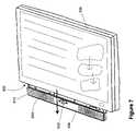 As shown inFIG. 5B, media slice104 also includes akeyhole slot526 on its underside, which permits it to attach to PC stand102 or to another expansion device in the same way as the PC attaches to the media slice. As further shown, media slice104 may also include features for enhancing use of the media slice/PC unit in apart from a stand or other device. For instance, the media slice may includefoldout legs528 for support the PC at a desirable viewing angle when the media slice/PC unit is placed on a substantially horizontal surface.FIG. 6 shows the PC/media slice unit in an angled mode of use provided bylegs528 and a front portion of the media slice. Such an angled configuration can improve viewability of the PC screen when playing a DVD or otherwise interacting with the PC.