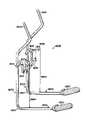 BACKGROUND OF THE INVENTIONExercise equipment has been designed to facilitate a variety of lower body exercise motions. For example, treadmills allow a person to walk or run in place; stepper machines allow a person to climb in place; bicycle machines allow a person to pedal in place; other machines allow a person to skate and/or stride in place; and still other machines guide a person's feet through elliptical paths of travel. Yet another exercise apparatus, disclosed in U.S. Pat. No. 5,290,211 to Stearns, is designed to facilitate several different exercise motions, including free form paths of foot movement and controlled paths of foot movement comparable to walking, running, stepping, cycling, striding, skiing, and/or elliptical motion.