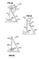 A lower portion of ahandle member1340 is movably connected to the forward end of theforce receiving member1380, adjacent theroller1389. In particular, a common shaft extends through theforce receiving member1380, theroller1389, and aslot1348 provided in the lower portion of thehandle member1340. An opposite,upper end1349 of thehandle member1340 is sized and configured for grasping by a person standing on theforce receiving member1380. An intermediate portion of thehandle member1340 is rotatably connected to abracket1304 which, in turn, is slidably mounted on theforward stanchion1321 above thebracket1309. Apin1302 may be selectively inserted through aligned holes in thebracket1304 and thestanchion1321 to secure thebracket1304 in any of several positions above thefloor surface99. Theslot1348 in thehandle member1340 accommodates height adjustments and allows thehandle member1340 to pivot about its connection with thebracket1304 while theroller1389 moves through a linear path of motion. As a result of this arrangement, the height of thehandle member1340 can be adjusted without affecting the path of thefoot support1380, and/or the path of thefoot support1380 can be adjusted without affecting the height of thehandle member1340, even though the two force receiving members are linked to one another. Some alternative elevation adjustment means are described below with reference toFIGS. 25–26.