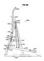 Yet another suitable elevation adjustment mechanism is shown diagrammatically inFIG. 26, wherein aframe1420′ again includes asleeve131′ which is movable along an upwardly extendingstanchion1425. Therails1430′ (only one of which is shown) are rotatably mounted to thesleeve1415 to define theaxis1481′. Anactuator1404, such as a motor or a hydraulic drive, is rigidly secured to thesleeve1415 and connected to a shaft which extends through thesleeve1415 and into thestanchion1425. Theactuator1404 selectively moves the shaft relative to thesleeve1415, causing theactuator1404 and thesleeve1415 to travel up and down together relative to the stanchion1425 (as indicated by the arrows). Theactuator1404 may operate in response to signals from a person and/or a computer controller.