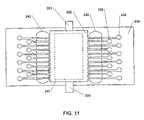 FIG. 10 is a diagrammatic plan view showing an in-process element formed from the laminate ofFIG. 9 in conjunction with a microelectronic element.