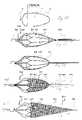 Normally it can be expected that the major part of the debris will collect most distally, leaving the most proximal holes open for blood flow. This can be improved by providingadditional reservoir472, which is connected to theconical section473 by aportion474. If the diameter ofreservoir472 is half the maximum diameter of the frame, the surface area that remains free for blood flow between the wall of the full reservoir and the artery wall is still 75% of the maximum surface area of the artery. The capacity ofreservoir472 can be chosen so that the closure of filter holes insection473 by abundant debris is most unlikely. Additional flushing and/or suction as described with references toFIG. 38, may further help here. Of course, continuous monitoring of the blood flow beyond the distal end of the filter will give the necessary information if the situation becomes critical and the filter must be removed.